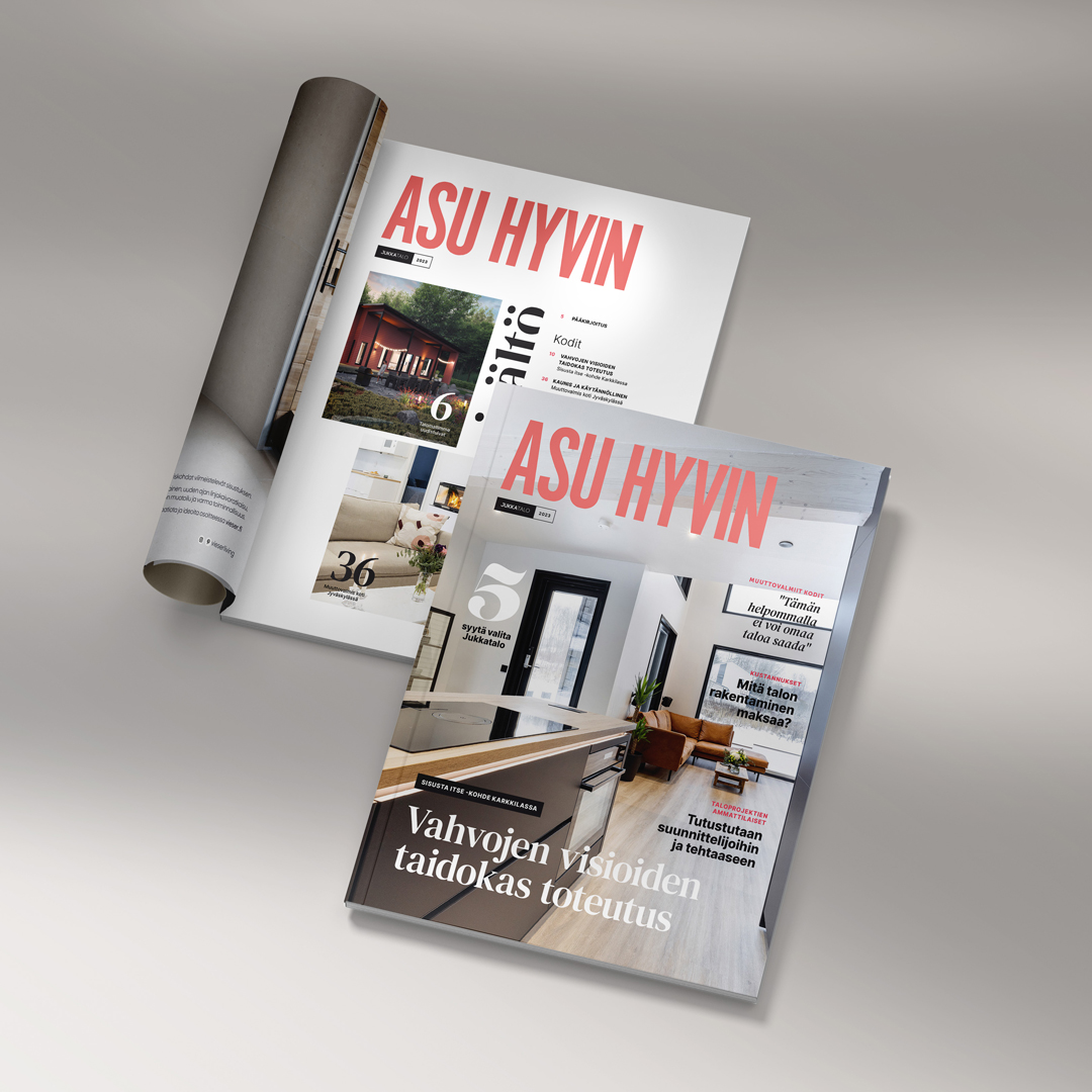Jukkatalo julkaisi kerran vuodessa asiakkailleen ja rakentamisesta kiinnostuneille Asu hyvin -lehteä, joka tarjosi inspiraatiota, ideoita ja hyötytietoa asumisesta.